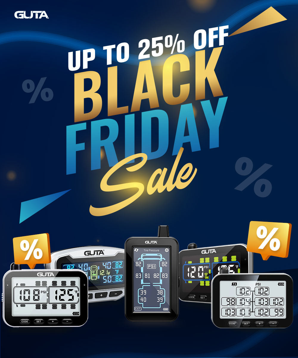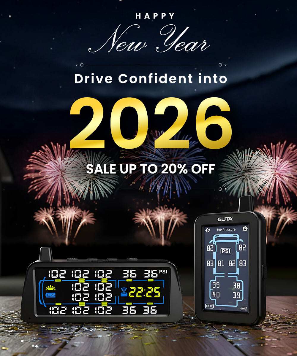 GUTA TPMS with long-range signal transmission and instant alerts for pressure or temperature changes, it helps prevent blowouts and extends tire lifespan, is the perfect companion for RVs, trucks, and trailers.