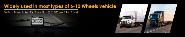 Equipped with a repeater (EXCEPT FOR 4-SENSOR MODEL), sensor signal transmission distance max up to 80 ft. tire pressure monitoring range is 0-188psi, the tire temperature monitoring range is -4~185 ℉.