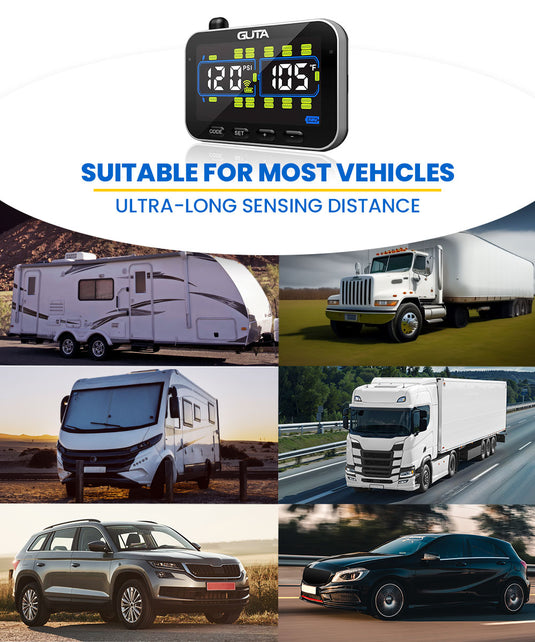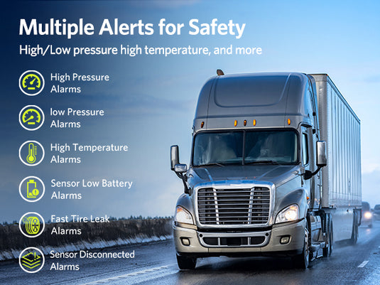 Features 6 alert modes, including rapid deflation, extreme pressure, and temperature changes. Supports up to 24 tires, with expandable sensor options to fit personal or commercial needs.