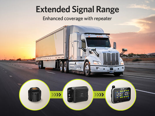 Monitors tire pressure from 0-188 PSI with extended connectivity for RVs, trailers, semi-trucks, and fleets, ensuring safety during long-distance travel.