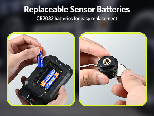 Pre-paired sensors enable quick setup. Easily switch between PSI/BAR and ℃/℉, and adjust alarm thresholds within +25% to -15% of the reference pressure.