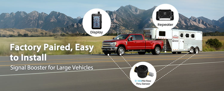 Supports up to 5 vehicle types, making it ideal for RVs, trailers, and fleets. Wireless sensor pairing enables quick installation, while an optional signal booster extends range up to 164 feet, ensuring stable monitoring for long vehicles.
